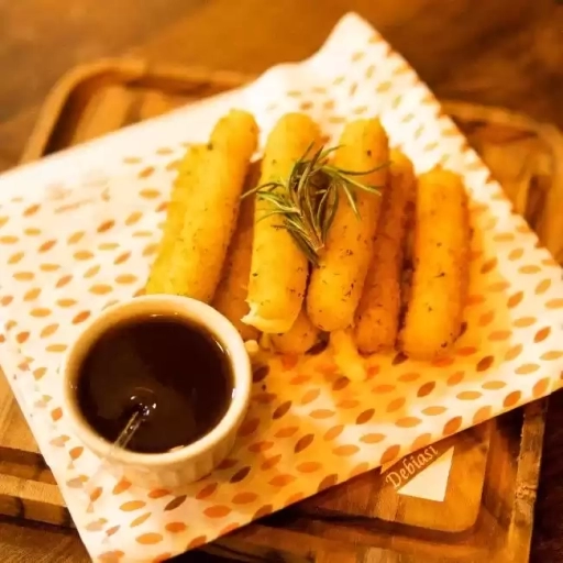 Deliciosos pedaços do paraíso! Muçarela Empanada super crocante, acompanhada do molho BBQ da Casa. (10u)